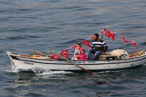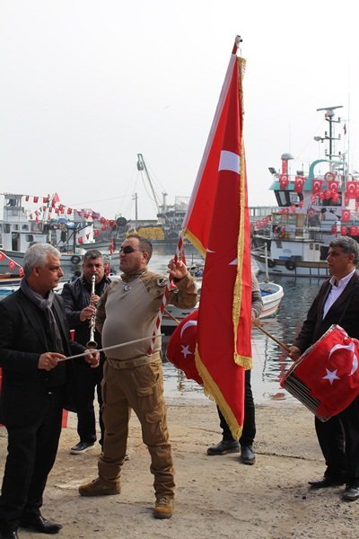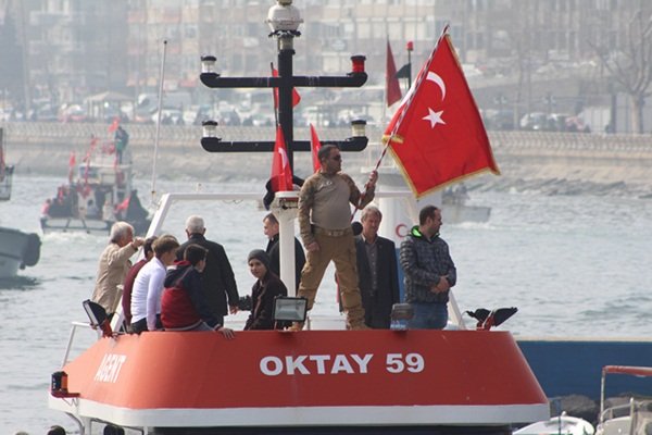 Tekirdağ'da Balıkçılar terör örgütlerine yönelik sürdürülen Zeytin Dalı Harekatına destek için, denize açıldılar.